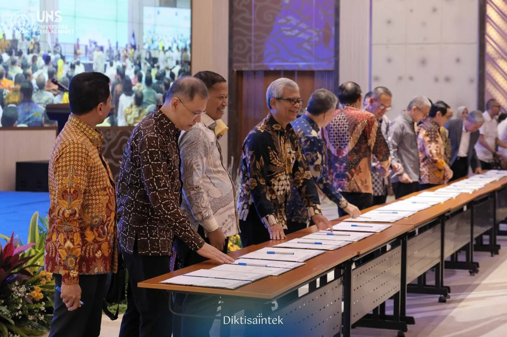 UNS — Universitas Sebelas Maret (UNS) Surakarta bersama pimpinan Perguruan Tinggi Negeri (PTN) dan Perguruan Tinggi Swasta (PTS) di Indonesia lainnya menandatangani Kontrak Kinerja Perguruan Tinggi Berdampak Tahun 2026. Penandatanganan ini menjadi langkah strategis dalam menyatukan arah pengelolaan perguruan tinggi agar selaras dengan visi pembangunan nasional menuju Indonesia Emas 2045.